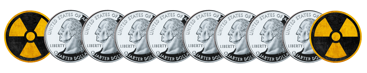 While the concentration of these heavy elements varies tremendously across the world, it’s useful to look at overall averages. It turns out that electrifying your house leaves behind about 1.7 ounces of thorium and uranium each month, about the same weight as 8 US quarters (Freeing Energy). In some places, the concentrations can be 6-7 times higher – so high that at least one mining company is finding it cheaper to extract uranium from coal ash than uranium mines.