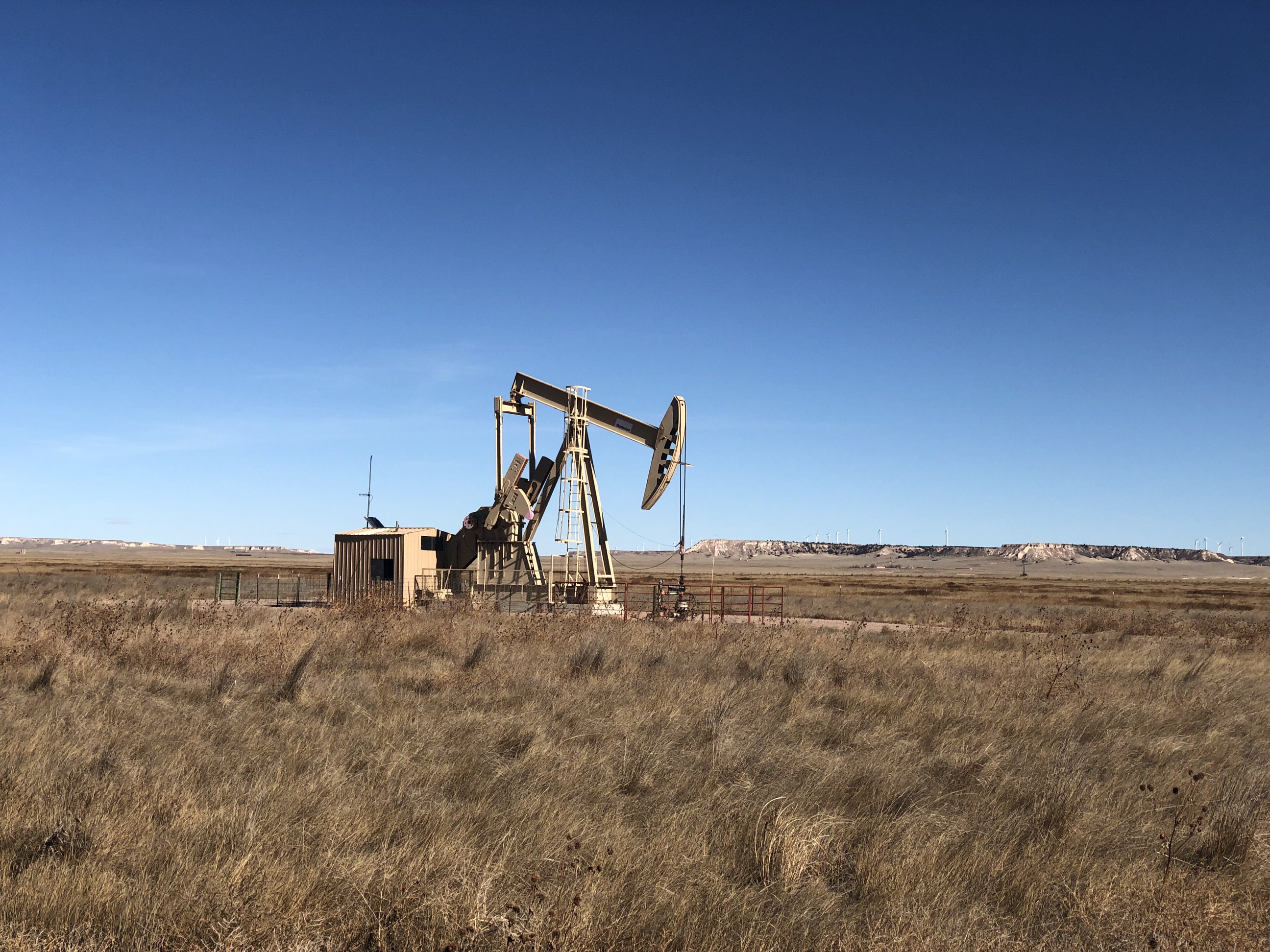 With the turbines receding into the distance, I began to notice something that had been hidden by the pre-dawn light on the drive out there. Everywhere I looked, in every direction, the fields and farms and plains were dotted with the machinery of oil and gas. Hundreds of derricks, tanks, pipes, and wells. A few were slowly bobbing up and down sucking oil from the earth. Many others seemed abandoned, rusting in the midday sun. I was seeing the other side of the energy system that, along with the nearby wind, sustains every part of our modern society. As I drove back towards civilization, I felt like I had been a witness to the evolution of energy, its past, its present, and its wonderful future.