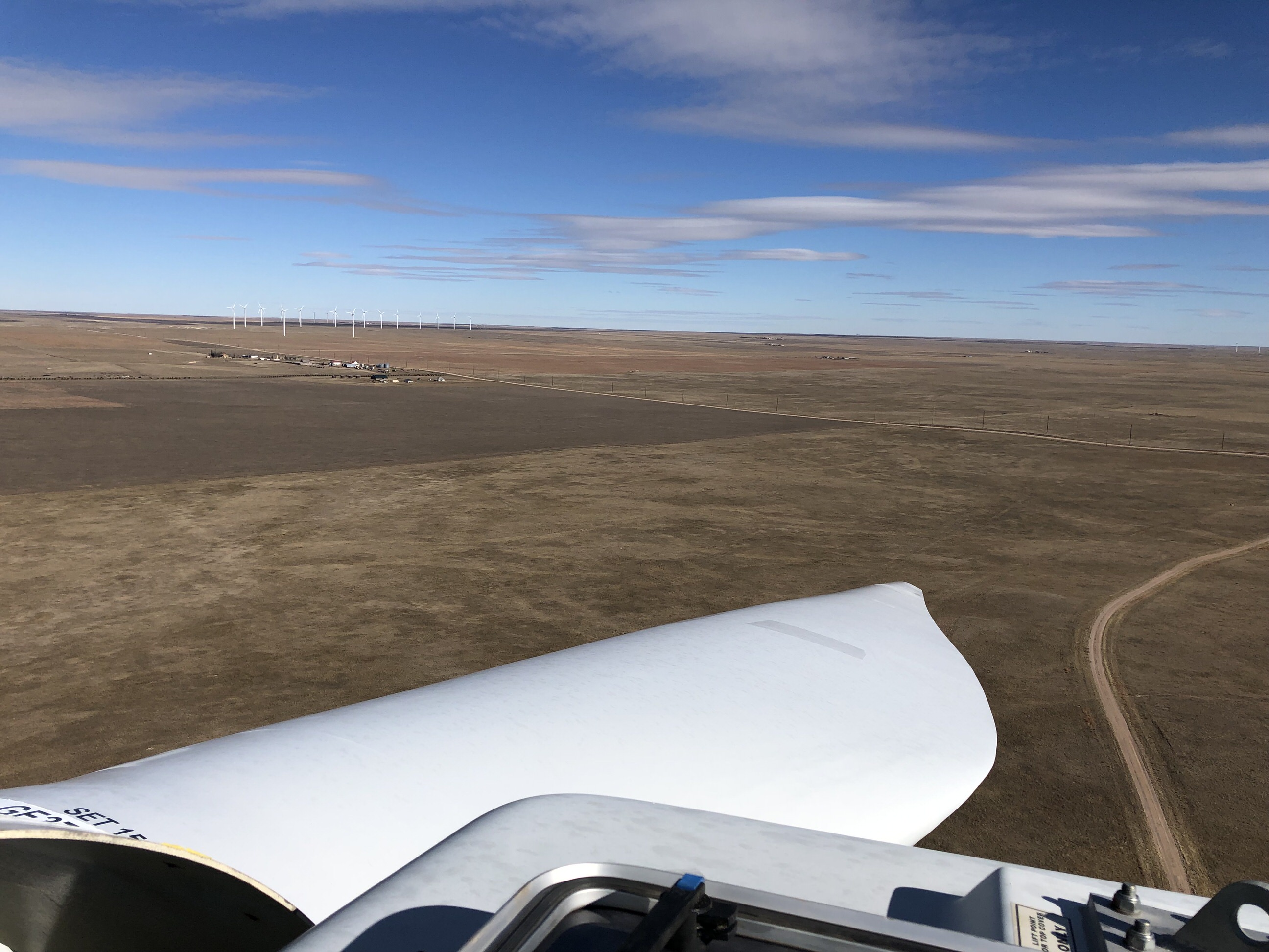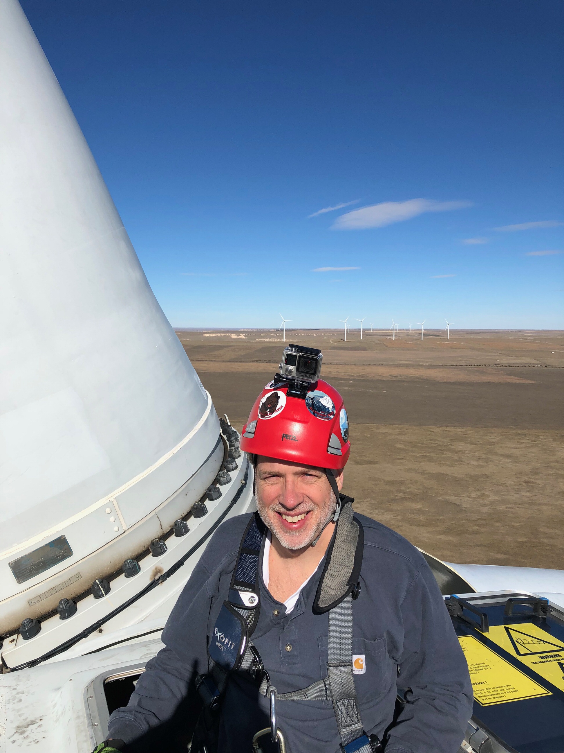 I made my way to the drive shaft. I stood up on it and discovered a view of the world I had never seen before. It was magnificent. Dozens of turbines surrounded me, seemingly below me, lazily spinning in the wind. As I turned, I saw the blade of our turbine, locked in place next to me. It was enormous. Its curves were beautiful as it extended 120 feet into the sky – another 12 stories above my head.